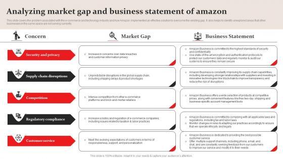 This slide covers the problem associated with the e commerce and technology industry and how Amazon implemented an effective solution to overcome the existing gap. It also helps to identify unexplored areas that other businesses in the same space are not serving currently. Present like a pro with Analyzing Market Gap And Business Amazon Business Plan Go To Market Strategy Diagrams Pdf Create beautiful presentations together with your team, using our easy to use presentation slides. Share your ideas in real time and make changes on the fly by downloading our templates. So whether you are in the office, on the go, or in a remote location, you can stay in sync with your team and present your ideas with confidence. With Slidegeeks presentation got a whole lot easier. Grab these presentations today. This slide covers the problem associated with the e commerce and technology industry and how Amazon implemented an effective solution to overcome the existing gap. It also helps to identify unexplored areas that other businesses in the same space are not serving currently.