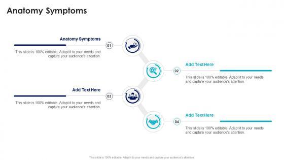 Presenting our innovatively-designed set of slides titled Anatomy Symptoms In Powerpoint And Google Slides Cpb. This completely editable PowerPoint graphic exhibits Anatomy Symptoms that will help you convey the message impactfully. It can be accessed with Google Slides and is available in both standard screen and widescreen aspect ratios. Apart from this, you can download this well-structured PowerPoint template design in different formats like PDF, JPG, and PNG. So, click the download button now to gain full access to this PPT design. Our Anatomy Symptoms In Powerpoint And Google Slides Cpb are topically designed to provide an attractive backdrop to any subject. Use them to look like a presentation pro.