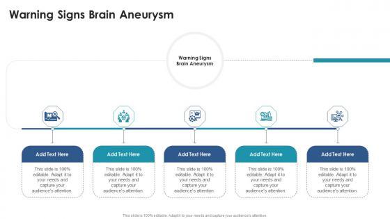 Introducing our well designed Warning Signs Brain Aneurysm In Powerpoint And Google Slides Cpb. This PowerPoint design presents information on topics like Warning Signs Brain Aneurysm. As it is predesigned it helps boost your confidence level. It also makes you a better presenter because of its high quality content and graphics. This PPT layout can be downloaded and used in different formats like PDF, PNG, and JPG. Not only this, it is available in both Standard Screen and Widescreen aspect ratios for your convenience. Therefore, click on the download button now to persuade and impress your audience. Our Warning Signs Brain Aneurysm In Powerpoint And Google Slides Cpb are topically designed to provide an attractive backdrop to any subject. Use them to look like a presentation pro.