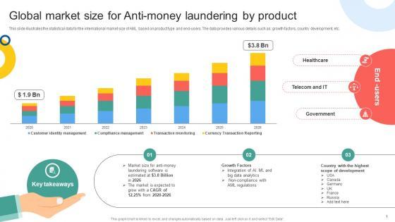 This slide illustrates the statistical data for the international market size of AML based on product type and end-users. The data provides various details such as growth factors, country development, etc. Explore a selection of the finest Global Market Size For Anti Money Laundering Mapping Out The Anti Money Fin SS V here. With a plethora of professionally designed and pre-made slide templates, you can quickly and easily find the right one for your upcoming presentation. You can use our Global Market Size For Anti Money Laundering Mapping Out The Anti Money Fin SS V to effectively convey your message to a wider audience. Slidegeeks has done a lot of research before preparing these presentation templates. The content can be personalized and the slides are highly editable. Grab templates today from Slidegeeks. This slide illustrates the statistical data for the international market size of AML based on product type and end-users. The data provides various details such as growth factors, country development, etc.