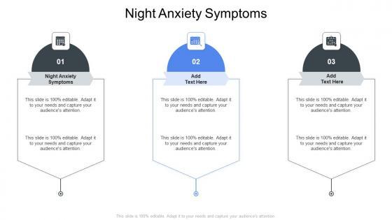 Introducing our well designed Night Anxiety Symptoms In Powerpoint And Google Slides Cpb. This PowerPoint design presents information on topics like Night Anxiety Symptoms. As it is predesigned it helps boost your confidence level. It also makes you a better presenter because of its high quality content and graphics. This PPT layout can be downloaded and used in different formats like PDF, PNG, and JPG. Not only this, it is available in both Standard Screen and Widescreen aspect ratios for your convenience. Therefore, click on the download button now to persuade and impress your audience. Our Night Anxiety Symptoms In Powerpoint And Google Slides Cpb are topically designed to provide an attractive backdrop to any subject. Use them to look like a presentation pro.