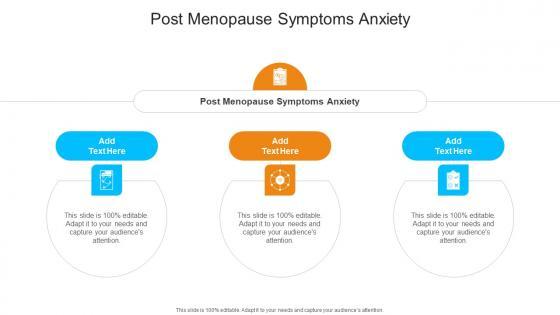 Introducing our well designed Post Menopause Symptoms Anxiety In Powerpoint And Google Slides Cpb. This PowerPoint design presents information on topics like Post Menopause Symptoms Anxiety. As it is predesigned it helps boost your confidence level. It also makes you a better presenter because of its high quality content and graphics. This PPT layout can be downloaded and used in different formats like PDF, PNG, and JPG. Not only this, it is available in both Standard Screen and Widescreen aspect ratios for your convenience. Therefore, click on the download button now to persuade and impress your audience. Our Post Menopause Symptoms Anxiety In Powerpoint And Google Slides Cpb are topically designed to provide an attractive backdrop to any subject. Use them to look like a presentation pro.