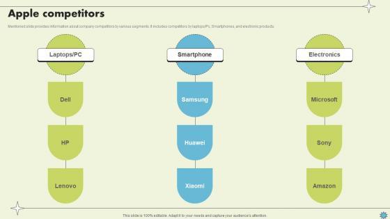 Mentioned slide provides information about company competitors by various segments. It includes competitors by laptops or Pc, Smartphones, and electronic products.Boost your pitch with our creative Apple Competitors Consumer Electronics Company Profile CP SS V. Deliver an awe-inspiring pitch that will mesmerize everyone. Using these presentation templates you will surely catch everyones attention. You can browse the ppts collection on our website. We have researchers who are experts at creating the right content for the templates. So you do not have to invest time in any additional work. Just grab the template now and use them. Mentioned slide provides information about company competitors by various segments. It includes competitors by laptops or Pc, Smartphones, and electronic products.