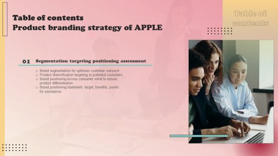 Get a simple yet stunning designed Table Of Contents Product Branding Strategy Of Apple Slide Pictures Pdf. It is the best one to establish the tone in your meetings. It is an excellent way to make your presentations highly effective. So, download this PPT today from Slidegeeks and see the positive impacts. Our easy-to-edit Table Of Contents Product Branding Strategy Of Apple Slide Pictures Pdf can be your go-to option for all upcoming conferences and meetings. So, what are you waiting for Grab this template today. Our Table Of Contents Product Branding Strategy Of Apple Slide Pictures Pdf are topically designed to provide an attractive backdrop to any subject. Use them to look like a presentation pro.