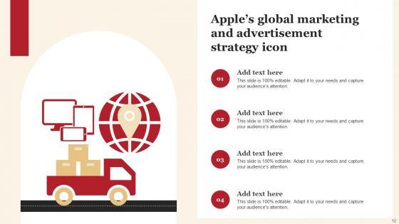 Showcasing this set of slides titled Apples Global Marketing And Advertisement Strategy Icon Ideas Pdf The topics addressed in these templates are Apples Global, Marketing And Advertisement, Strategy Icon All the content presented in this PPT design is completely editable. Download it and make adjustments in color, background, font etc. as per your unique business setting. Our Apples Global Marketing And Advertisement Strategy Icon Ideas Pdf are topically designed to provide an attractive backdrop to any subject. Use them to look like a presentation pro.