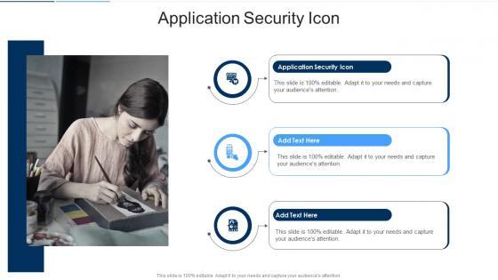 Introducing our well designed Application Security Icon In Powerpoint And Google Slides Cpb. This PowerPoint design presents information on topics like Application Security Icon. As it is predesigned it helps boost your confidence level. It also makes you a better presenter because of its high-quality content and graphics. This PPT layout can be downloaded and used in different formats like PDF, PNG, and JPG. Not only this, it is available in both Standard Screen and Widescreen aspect ratios for your convenience. Therefore, click on the download button now to persuade and impress your audience. Our Application Security Icon In Powerpoint And Google Slides Cpb are topically designed to provide an attractive backdrop to any subject. Use them to look like a presentation pro.