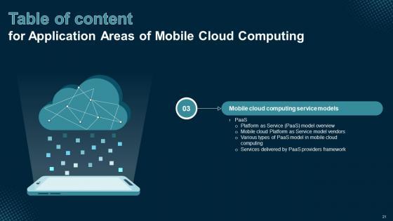 This Application Areas Of Mobile Cloud Computing Ppt Powerpoint Presentation Complete Deck is designed to help you retain your audiences attention. This content-ready PowerPoint Template enables you to take your audience on a journey and share information in a way that is easier to recall. It helps you highlight the crucial parts of your work so that the audience does not get saddled with information download. This eighty three-slide PPT Deck comes prepared with the graphs and charts you could need to showcase your information through visuals. You only need to enter your own data in them. Download this editable PowerPoint Theme and walk into that meeting with confidence. Our Application Areas Of Mobile Cloud Computing Ppt Powerpoint Presentation Complete Deck are topically designed to provide an attractive backdrop to any subject. Use them to look like a presentation pro.