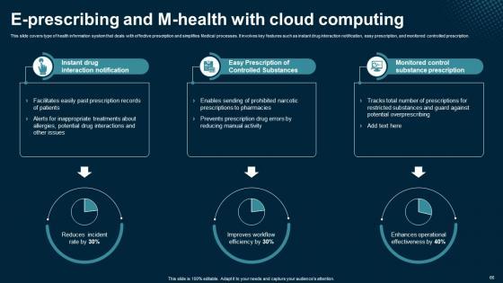 This slide covers type of health information system that deals with effective prescription and simplifies Medical processes. It involves key features such as instant drug interaction notification, easy prescription, and monitored controlled prescription. Present like a pro with Emerging Trends In Mobile Cloud Computing Application Areas Of Mobile Cloud Computing. Create beautiful presentations together with your team, using our easy-to-use presentation slides. Share your ideas in real-time and make changes on the fly by downloading our templates. So whether you are in the office, on the go, or in a remote location, you can stay in sync with your team and present your ideas with confidence. With Slidegeeks presentation got a whole lot easier. Grab these presentations today. This slide covers type of health information system that deals with effective prescription and simplifies Medical processes. It involves key features such as instant drug interaction notification, easy prescription, and monitored controlled prescription.