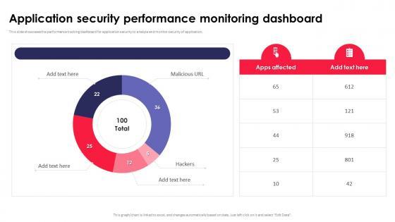 This slide showcases the performance tracking dashboard for application security to analyze and monitor security of application. Want to ace your presentation in front of a live audience Our Application Security Performance Monitoring Application Security Testing can help you do that by engaging all the users towards you. Slidegeeks experts have put their efforts and expertise into creating these impeccable powerpoint presentations so that you can communicate your ideas clearly. Moreover, all the templates are customizable, and easy-to-edit and downloadable. Use these for both personal and commercial use. This slide showcases the performance tracking dashboard for application security to analyze and monitor security of application.