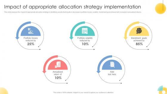 This slide analyzes the impact of appropriate allocation strategy in identifying assets that results in decrease in portfolio losses, volatility, investment goal achievement, increase in annualized returns. The Impact Of Appropriate Allocation Strategic Investment Plan For Optimizing Risk SS V is a compilation of the most recent design trends as a series of slides. It is suitable for any subject or industry presentation, containing attractive visuals and photo spots for businesses to clearly express their messages. This template contains a variety of slides for the user to input data, such as structures to contrast two elements, bullet points, and slides for written information. Slidegeeks is prepared to create an impression. This slide analyzes the impact of appropriate allocation strategy in identifying assets that results in decrease in portfolio losses, volatility, investment goal achievement, increase in annualized returns.
