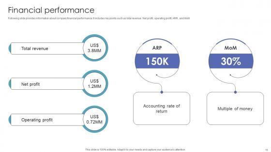 Following slide provides information about company financial performance. It includes key points such as total revenue. Net profit, operating profit, ARR, and MoMPresent like a pro with Financial Performance Investor Funding Pitch Deck For Automated Ar Platform. Create beautiful presentations together with your team, using our easy-to-use presentation slides. Share your ideas in real-time and make changes on the fly by downloading our templates. So whether you are in the office, on the go, or in a remote location, you can stay in sync with your team and present your ideas with confidence. With Slidegeeks presentation got a whole lot easier. Grab these presentations today. Following slide provides information about company financial performance. It includes key points such as total revenue. Net profit, operating profit, ARR, and MoM