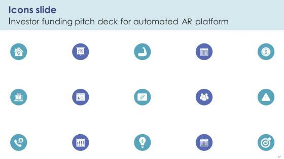 Download our innovative and attention grabbing Icons Slide Investor Funding Pitch Deck For Automated Ar Platform template. The set of slides exhibit completely customizable icons. These icons can be incorporated into any business presentation. So download it immediately to clearly communicate with your clientele. Our Icons Slide Investor Funding Pitch Deck For Automated Ar Platform are topically designed to provide an attractive backdrop to any subject. Use them to look like a presentation pro.