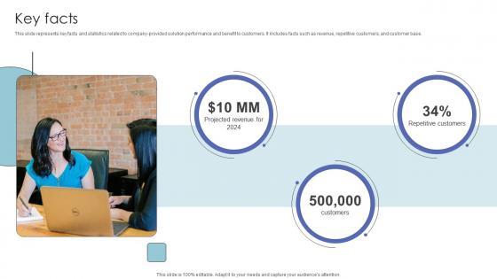 This slide represents key facts and statistics related to company-provided solution performance and benefit to customers. It includes facts such as revenue, repetitive customers, and customer base.If your project calls for a presentation, then Slidegeeks is your go-to partner because we have professionally designed, easy-to-edit templates that are perfect for any presentation. After downloading, you can easily edit Key Facts Investor Funding Pitch Deck For Automated Ar Platform and make the changes accordingly. You can rearrange slides or fill them with different images. Check out all the handy templates This slide represents key facts and statistics related to company-provided solution performance and benefit to customers. It includes facts such as revenue, repetitive customers, and customer base.