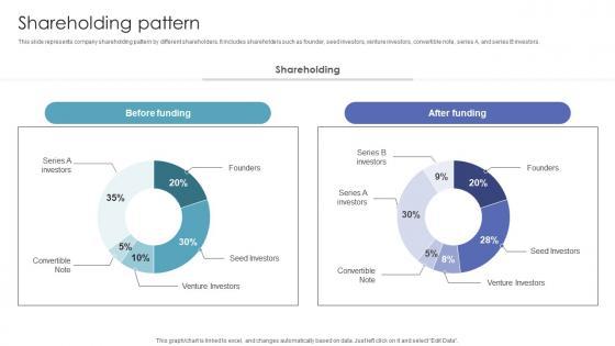 This slide represents company shareholding pattern by different shareholders. It includes shareholders such as founder, seed investors, venture investors, convertible note, series A, and series B investors.This Shareholding Pattern Investor Funding Pitch Deck For Automated Ar Platform is perfect for any presentation, be it in front of clients or colleagues. It is a versatile and stylish solution for organizing your meetings. The Shareholding Pattern Investor Funding Pitch Deck For Automated Ar Platform features a modern design for your presentation meetings. The adjustable and customizable slides provide unlimited possibilities for acing up your presentation. Slidegeeks has done all the homework before launching the product for you. So, do not wait, grab the presentation templates today This slide represents company shareholding pattern by different shareholders. It includes shareholders such as founder, seed investors, venture investors, convertible note, series A, and series B investors.