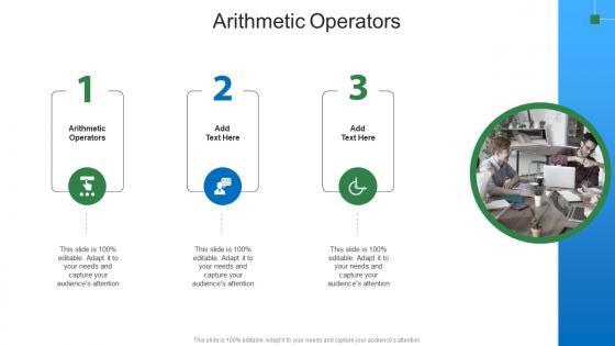 Presenting our innovatively designed set of slides titled Arithmetic Operators In Powerpoint And Google Slides Cpb. This completely editable PowerPoint graphic exhibits Arithmetic Operators that will help you convey the message impactfully. It can be accessed with Google Slides and is available in both standard screen and widescreen aspect ratios. Apart from this, you can download this well structured PowerPoint template design in different formats like PDF, JPG, and PNG. So, click the download button now to gain full access to this PPT design. Our Arithmetic Operators In Powerpoint And Google Slides Cpb are topically designed to provide an attractive backdrop to any subject. Use them to look like a presentation pro.