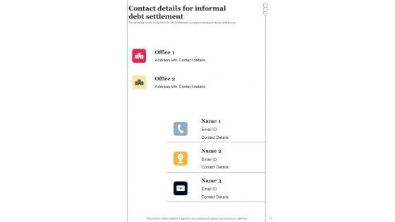 Here is a predesigned Informal Debt Arrangement Example Document Report Doc Pdf Ppt for you. Built on extensive research and analysis, this one-complete deck has all the center pieces of your specific requirements. This temple exudes brilliance and professionalism. Being completely editable, you can make changes to suit your purpose. Get this Informal Debt Arrangement Example Document Report Doc Pdf Ppt A4 One-pager now. Our Informal Debt Arrangement Example Document Report Doc Pdf Ppt are topically designed to provide an attractive backdrop to any subject. Use them to look like a presentation pro.