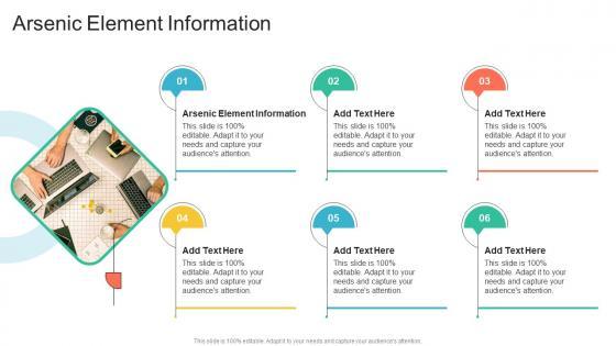 Presenting our innovatively-designed set of slides titled Arsenic Element Information In Powerpoint And Google Slides Cpb. This completely editable PowerPoint graphic exhibits Arsenic Element Information that will help you convey the message impactfully. It can be accessed with Google Slides and is available in both standard screen and widescreen aspect ratios. Apart from this, you can download this well-structured PowerPoint template design in different formats like PDF, JPG, and PNG. So, click the download button now to gain full access to this PPT design. Our Arsenic Element Information In Powerpoint And Google Slides Cpb are topically designed to provide an attractive backdrop to any subject. Use them to look like a presentation pro.