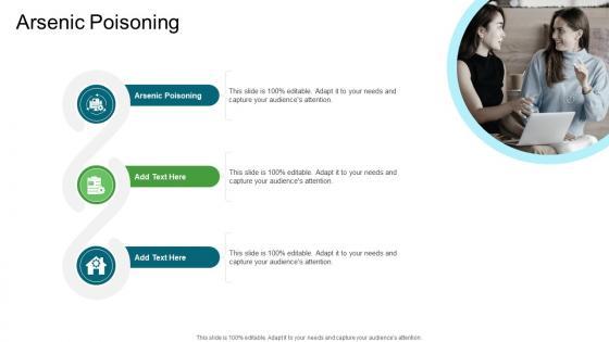 Introducing our well designed Arsenic Poisoning In Powerpoint And Google Slides Cpb. This PowerPoint design presents information on topics like Arsenic Poisoning. As it is predesigned it helps boost your confidence level. It also makes you a better presenter because of its high-quality content and graphics. This PPT layout can be downloaded and used in different formats like PDF, PNG, and JPG. Not only this, it is available in both Standard Screen and Widescreen aspect ratios for your convenience. Therefore, click on the download button now to persuade and impress your audience. Our Arsenic Poisoning In Powerpoint And Google Slides Cpb are topically designed to provide an attractive backdrop to any subject. Use them to look like a presentation pro.