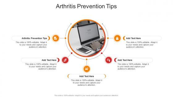 Introducing our well-designed Arthritis Prevention Tips In Powerpoint And Google Slides Cpb. This PowerPoint design presents information on topics like Arthritis Prevention Tips. As it is predesigned it helps boost your confidence level. It also makes you a better presenter because of its high-quality content and graphics. This PPT layout can be downloaded and used in different formats like PDF, PNG, and JPG. Not only this, it is available in both Standard Screen and Widescreen aspect ratios for your convenience. Therefore, click on the download button now to persuade and impress your audience. Our Arthritis Prevention Tips In Powerpoint And Google Slides Cpb are topically designed to provide an attractive backdrop to any subject. Use them to look like a presentation pro.