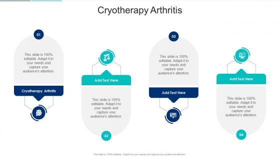 Introducing our well designed Cryotherapy Arthritis In Powerpoint And Google Slides Cpb. This PowerPoint design presents information on topics like Cryotherapy Arthritis. As it is predesigned it helps boost your confidence level. It also makes you a better presenter because of its high quality content and graphics. This PPT layout can be downloaded and used in different formats like PDF, PNG, and JPG. Not only this, it is available in both Standard Screen and Widescreen aspect ratios for your convenience. Therefore, click on the download button now to persuade and impress your audience. Our Cryotherapy Arthritis In Powerpoint And Google Slides Cpb are topically designed to provide an attractive backdrop to any subject. Use them to look like a presentation pro.