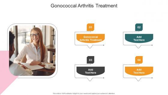 Introducing our well designed Gonococcal Arthritis Treatment In Powerpoint And Google Slides Cpb. This PowerPoint design presents information on topics like Gonococcal Arthritis Treatment. As it is predesigned it helps boost your confidence level. It also makes you a better presenter because of its high-quality content and graphics. This PPT layout can be downloaded and used in different formats like PDF, PNG, and JPG. Not only this, it is available in both Standard Screen and Widescreen aspect ratios for your convenience. Therefore, click on the download button now to persuade and impress your audience. Our Gonococcal Arthritis Treatment In Powerpoint And Google Slides Cpb are topically designed to provide an attractive backdrop to any subject. Use them to look like a presentation pro.