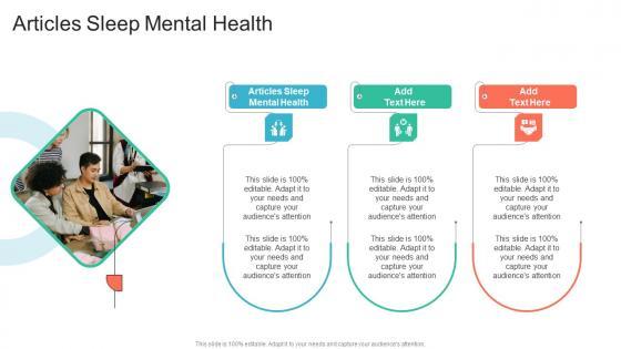Introducing our well-designed Articles Sleep Mental Health In Powerpoint And Google Slides Cpb. This PowerPoint design presents information on topics like Articles Sleep Mental Health. As it is predesigned it helps boost your confidence level. It also makes you a better presenter because of its high-quality content and graphics. This PPT layout can be downloaded and used in different formats like PDF, PNG, and JPG. Not only this, it is available in both Standard Screen and Widescreen aspect ratios for your convenience. Therefore, click on the download button now to persuade and impress your audience. Our Articles Sleep Mental Health In Powerpoint And Google Slides Cpb are topically designed to provide an attractive backdrop to any subject. Use them to look like a presentation pro.