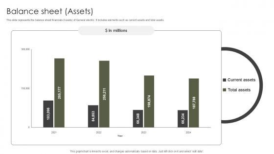 This slide represents the balance sheet financials Assets of General electric. It includes elements such as current assets and total assets. Create an editable Balance Sheet Assets Military Aircraft Engine Manufacturing PPT Example CP SS V that communicates your idea and engages your audience. Whether you are presenting a business or an educational presentation, pre-designed presentation templates help save time. Balance Sheet Assets Military Aircraft Engine Manufacturing PPT Example CP SS V is highly customizable and very easy to edit, covering many different styles from creative to business presentations. Slidegeeks has creative team members who have crafted amazing templates. So, go and get them without any delay. This slide represents the balance sheet financials Assets of General electric. It includes elements such as current assets and total assets.