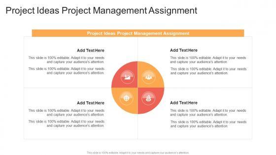 Presenting our innovatively designed set of slides titled Project Ideas Project Management Assignment In Powerpoint And Google Slides Cpb This completely editable PowerPoint graphic exhibits Project Ideas Project Management Assignment that will help you convey the message impactfully. It can be accessed with Google Slides and is available in both standard screen and widescreen aspect ratios. Apart from this, you can download this well structured PowerPoint template design in different formats like PDF, JPG, and PNG. So, click the download button now to gain full access to this PPT design. Our Project Ideas Project Management Assignment In Powerpoint And Google Slides Cpb are topically designed to provide an attractive backdrop to any subject. Use them to look like a presentation pro.