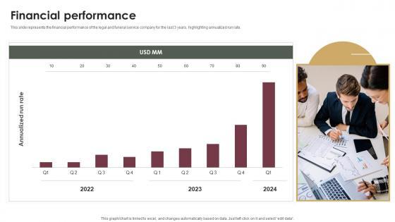 This slide represents the financial performance of the legal and funeral service company for the last 3 years, highlighting annualized run rate.From laying roadmaps to briefing everything in detail, our templates are perfect for you. You can set the stage with your presentation slides. All you have to do is download these easy-to-edit and customizable templates. Financial Performance Probate Assistance Solutions Company Investor Funding Elevator Pitch Deck will help you deliver an outstanding performance that everyone would remember and praise you for. Do download this presentation today. This slide represents the financial performance of the legal and funeral service company for the last 3 years, highlighting annualized run rate.