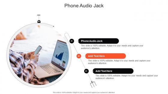 Introducing our well-designed Phone Audio Jack In Powerpoint And Google Slides Cpb. This PowerPoint design presents information on topics like Phone Audio Jack. As it is predesigned it helps boost your confidence level. It also makes you a better presenter because of its high-quality content and graphics. This PPT layout can be downloaded and used in different formats like PDF, PNG, and JPG. Not only this, it is available in both Standard Screen and Widescreen aspect ratios for your convenience. Therefore, click on the download button now to persuade and impress your audience. Our Phone Audio Jack In Powerpoint And Google Slides Cpb are topically designed to provide an attractive backdrop to any subject. Use them to look like a presentation pro.