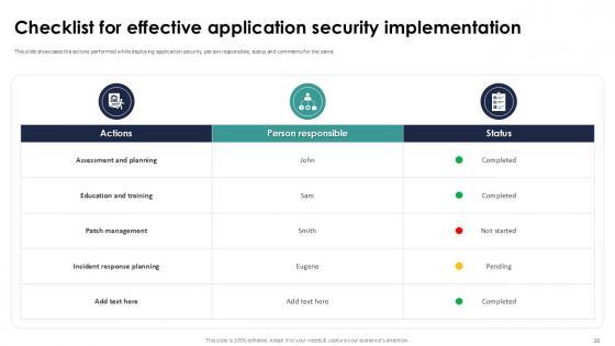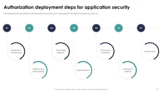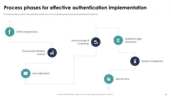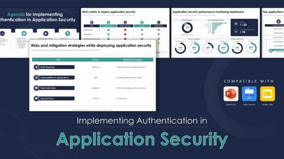 While your presentation may contain top-notch content, if it lacks visual appeal, you are not fully engaging your audience. Introducing our Implementing Authentication In Application Security PPT Example deck, designed to engage your audience. Our complete deck boasts a seamless blend of Creativity and versatility. You can effortlessly customize elements and color schemes to align with your brand identity. Save precious time with our pre-designed template, compatible with Microsoft versions and Google Slides. Plus, its downloadable in multiple formats like JPG, JPEG, and PNG. Elevate your presentations and outshine your competitors effortlessly with our visually stunning 100 percent editable deck. Our Implementing Authentication In Application Security PPT Example are topically designed to provide an attractive backdrop to any subject. Use them to look like a presentation pro.