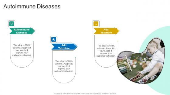 Introducing our well-designed Autoimmune Disorders In Powerpoint And Google Slides Cpb. This PowerPoint design presents information on topics like Autoimmune Disorders. As it is predesigned it helps boost your confidence level. It also makes you a better presenter because of its high-quality content and graphics. This PPT layout can be downloaded and used in different formats like PDF, PNG, and JPG. Not only this, it is available in both Standard Screen and Widescreen aspect ratios for your convenience. Therefore, click on the download button now to persuade and impress your audience. Our Autoimmune Disorders In Powerpoint And Google Slides Cpb are topically designed to provide an attractive backdrop to any subject. Use them to look like a presentation pro.