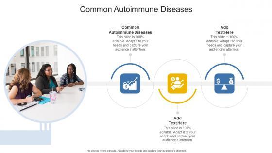 Introducing our well-designed Common Autoimmune Diseases In Powerpoint And Google Slides Cpb. This PowerPoint design presents information on topics like Common Autoimmune Diseases. As it is predesigned it helps boost your confidence level. It also makes you a better presenter because of its high-quality content and graphics. This PPT layout can be downloaded and used in different formats like PDF, PNG, and JPG. Not only this, it is available in both Standard Screen and Widescreen aspect ratios for your convenience. Therefore, click on the download button now to persuade and impress your audience. Our Common Autoimmune Diseases In Powerpoint And Google Slides Cpb are topically designed to provide an attractive backdrop to any subject. Use them to look like a presentation pro.