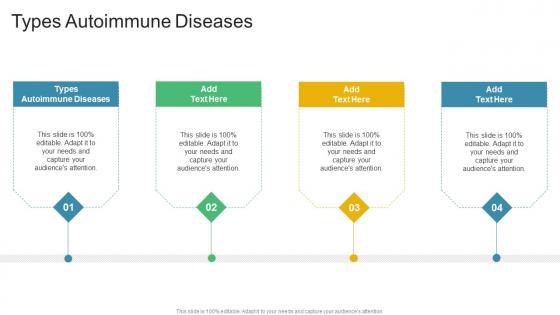 Presenting our innovatively designed set of slides titled Types Autoimmune Diseases In Powerpoint And Google Slides Cpb. This completely editable PowerPoint graphic exhibits Types Autoimmune Diseases that will help you convey the message impactfully. It can be accessed with Google Slides and is available in both standard screen and widescreen aspect ratios. Apart from this, you can download this well structured PowerPoint template design in different formats like PDF, JPG, and PNG. So, click the download button now to gain full access to this PPT design. Our Types Autoimmune Diseases In Powerpoint And Google Slides Cpb are topically designed to provide an attractive backdrop to any subject. Use them to look like a presentation pro.