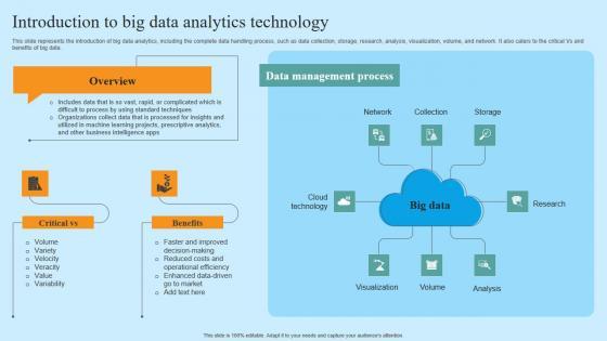 This slide represents the introduction of big data analytics, including the complete data handling process, such as data collection, storage, research, analysis, visualization, volume, and network. It also caters to the critical Vs and benefits of big data. Create an editable Intelligent Process Automation IPA Introduction To Big Data Analytics Technology Background PDF that communicates your idea and engages your audience. Whether you are presenting a business or an educational presentation, pre-designed presentation templates help save time. Intelligent Process Automation IPA Introduction To Big Data Analytics Technology Background PDF is highly customizable and very easy to edit, covering many different styles from creative to business presentations. Slidegeeks has creative team members who have crafted amazing templates. So, go and get them without any delay.