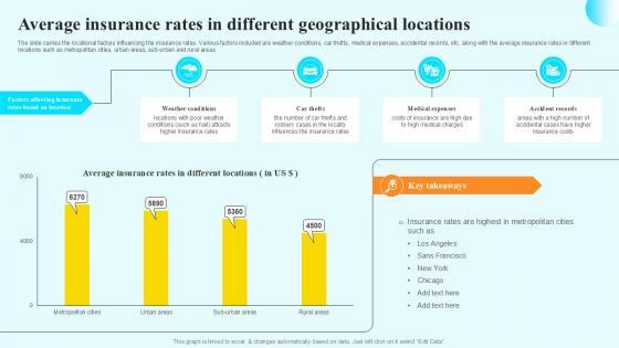 The slide carries the locational factors influencing the insurance rates. Various factors included are weather conditions, car thefts, medical expenses, accidental records, etc. along with the average insurance rates in different locations such as metropolitan cities, urban areas, sub-urban and rural areas. Get a simple yet stunning designed Average Insurance Rates In Different Steps By Step Guide For Claiming Car PPT Example. It is the best one to establish the tone in your meetings. It is an excellent way to make your presentations highly effective. So, download this PPT today from Slidegeeks and see the positive impacts. Our easy-to-edit Average Insurance Rates In Different Steps By Step Guide For Claiming Car PPT Example can be your go-to option for all upcoming conferences and meetings. So, what are you waiting for Grab this template today. The slide carries the locational factors influencing the insurance rates. Various factors included are weather conditions, car thefts, medical expenses, accidental records, etc. along with the average insurance rates in different locations such as metropolitan cities, urban areas, sub-urban and rural areas.