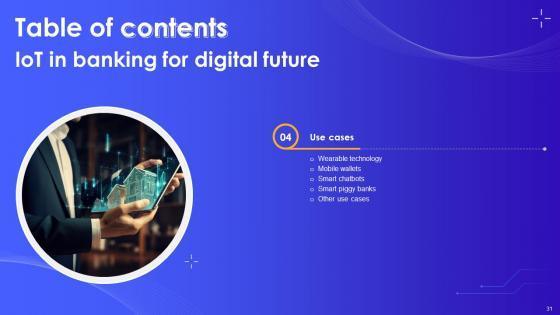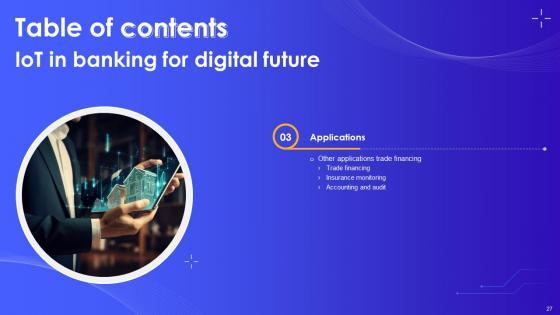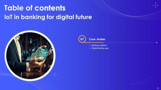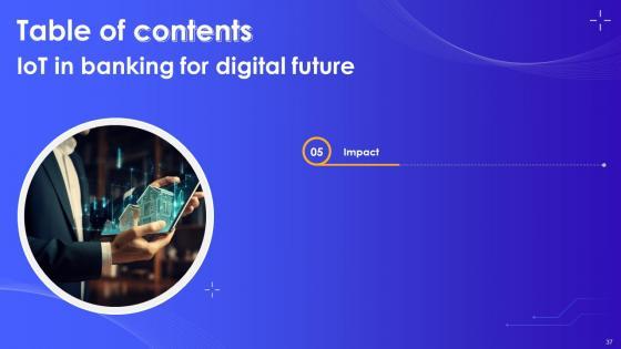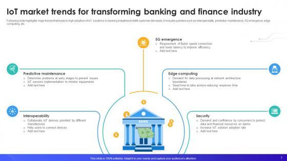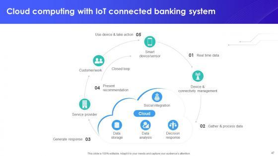 This IoT In Banking For Digital Future IoT CD V is designed to help you retain your audiences attention. This content-ready PowerPoint Template enables you to take your audience on a journey and share information in a way that is easier to recall. It helps you highlight the crucial parts of your work so that the audience does not get saddled with information download. This fifty three slide PPT Deck comes prepared with the graphs and charts you could need to showcase your information through visuals. You only need to enter your own data in them. Download this editable PowerPoint Theme and walk into that meeting with confidence. Our IoT In Banking For Digital Future IoT CD V are topically designed to provide an attractive backdrop to any subject. Use them to look like a presentation pro.