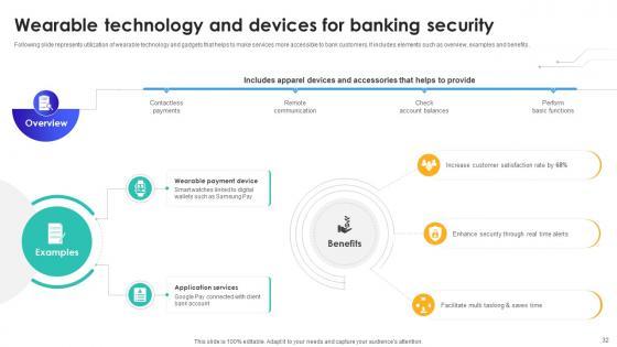 Following slide represents utilization of wearable technology and gadgets that helps to make services more accessible to bank customers. It includes elements such as overview, examples and benefits. Create an editable Wearable Technology And Devices For Banking Security IoT In Banking For Digital Future IoT SS V that communicates your idea and engages your audience. Whether you are presenting a business or an educational presentation, pre-designed presentation templates help save time. Wearable Technology And Devices For Banking Security IoT In Banking For Digital Future IoT SS V is highly customizable and very easy to edit, covering many different styles from creative to business presentations. Slidegeeks has creative team members who have crafted amazing templates. So, go and get them without any delay. Following slide represents utilization of wearable technology and gadgets that helps to make services more accessible to bank customers. It includes elements such as overview, examples and benefits.