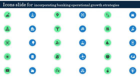 Download our innovative and attention grabbing Icons Slide For Incorporating Banking Operational Growth Strategies template. The set of slides exhibit completely customizable icons. These icons can be incorporated into any business presentation. So download it immediately to clearly communicate with your clientele. Our Icons Slide For Incorporating Banking Operational Growth Strategies are topically designed to provide an attractive backdrop to any subject. Use them to look like a presentation pro.