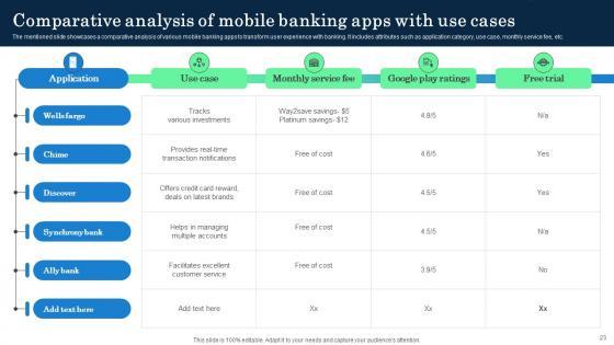 This slide highlights the promotion strategies for retail banking services which includes credit cards offers, word of mouth and offer free items to develop trust and increase awareness. Welcome to our selection of the Operational Innovation In Banking Promotion Strategies For Banking Services Topics PDF. These are designed to help you showcase your creativity and bring your sphere to life. Planning and Innovation are essential for any business that is just starting out. This collection contains the designs that you need for your everyday presentations. All of our PowerPoints are 100 percent editable, so you can customize them to suit your needs. This multi-purpose template can be used in various situations. Grab these presentation templates today.