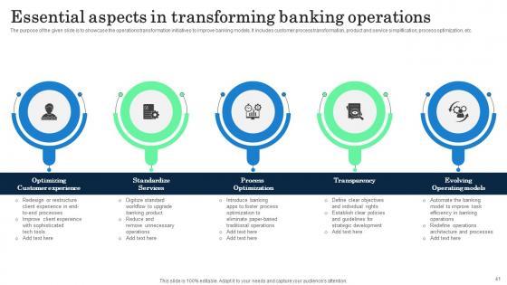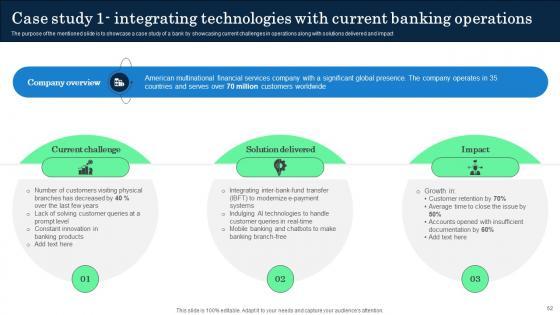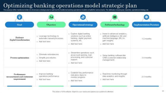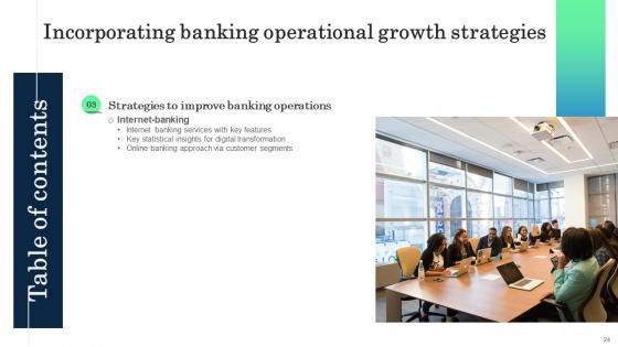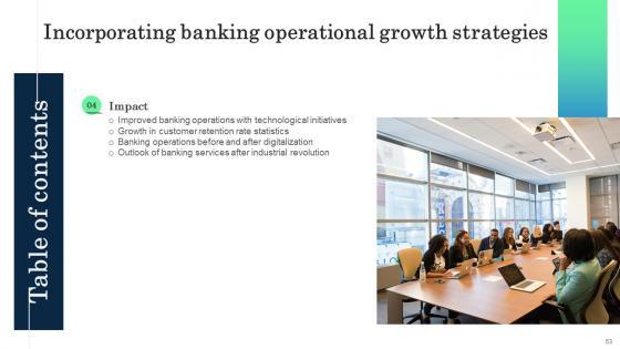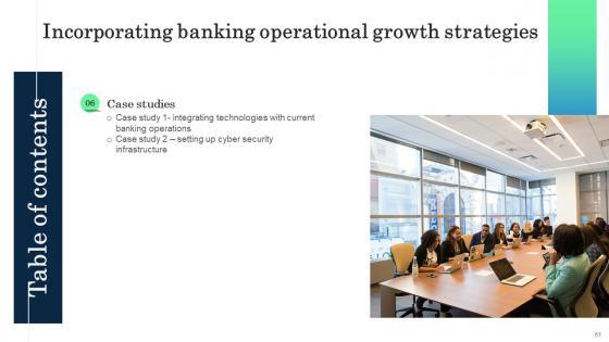 This Incorporating Banking Operational Growth Strategies Ppt Powerpoint Presentation Complete Deck is a primer on how to capitalize on business opportunities through planning, innovation, and market intelligence. The content-ready format of the complete deck will make your job as a decision-maker a lot easier. Use this ready-made PowerPoint Template to help you outline an extensive and legible plan to capture markets and grow your company on the right path, at an exponential pace. What is even more amazing is that this presentation is completely editable and 100 percent customizable. This seventy one-slide complete deck helps you impress a roomful of people with your expertise in business and even presentation. Craft such a professional and appealing presentation for that amazing recall value. Download now. Our Incorporating Banking Operational Growth Strategies Ppt Powerpoint Presentation Complete Deck are topically designed to provide an attractive backdrop to any subject. Use them to look like a presentation pro.