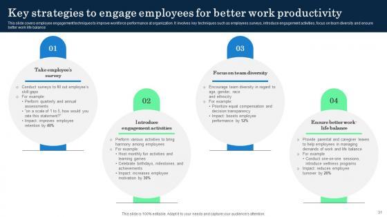 This slide covers employee engagement techniques to improve workforce performance at organization. It involves key techniques such as employees surveys, introduce engagement activities, focus on team diversity and ensure better work life balance. This Key Strategies To Engage Employees For Incorporating Banking Operational Growth from Slidegeeks makes it easy to present information on your topic with precision. It provides customization options, so you can make changes to the colors, design, graphics, or any other component to create a unique layout. It is also available for immediate download, so you can begin using it right away. Slidegeeks has done good research to ensure that you have everything you need to make your presentation stand out. Make a name out there for a brilliant performance. This slide covers employee engagement techniques to improve workforce performance at organization. It involves key techniques such as employees surveys, introduce engagement activities, focus on team diversity and ensure better work life balance
