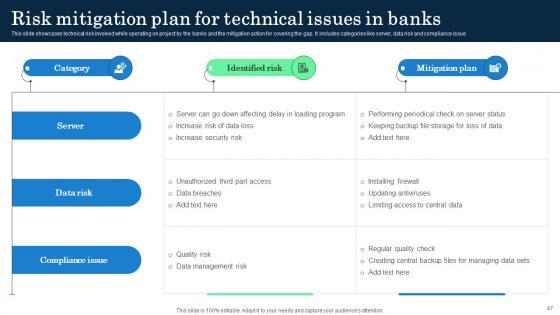 Deliver an awe inspiring pitch with this creative strategies to tackle operational risk in banking institutions table of contents portrait pdf bundle. Topics like risk governance, risk monitoring and reporting, risk analysis, risk quantification, kpi dashboards, risk integration can be discussed with this completely editable template. It is available for immediate download depending on the needs and requirements of the user.