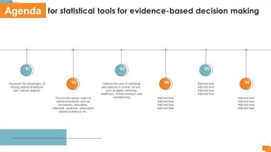 Want to ace your presentation in front of a live audience Our Agenda For Statistical Tools For Evidence Based Decision Making can help you do that by engaging all the users towards you. Slidegeeks experts have put their efforts and expertise into creating these impeccable powerpoint presentations so that you can communicate your ideas clearly. Moreover, all the templates are customizable, and easy-to-edit and downloadable. Use these for both personal and commercial use. Our Agenda For Statistical Tools For Evidence Based Decision Making are topically designed to provide an attractive backdrop to any subject. Use them to look like a presentation pro.