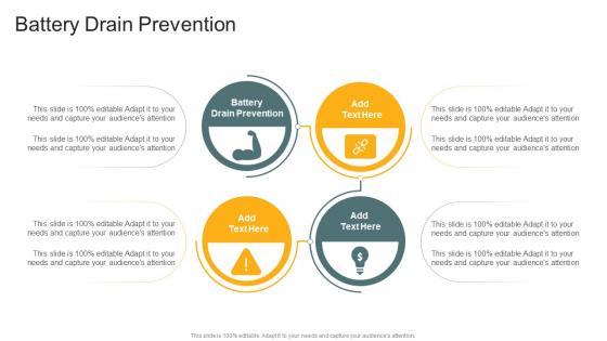 Introducing our well designed Battery Drain Prevention In Powerpoint And Google Slides Cpb. This PowerPoint design presents information on topics like Battery Drain Prevention. As it is predesigned it helps boost your confidence level. It also makes you a better presenter because of its high quality content and graphics. This PPT layout can be downloaded and used in different formats like PDF, PNG, and JPG. Not only this, it is available in both Standard Screen and Widescreen aspect ratios for your convenience. Therefore, click on the download button now to persuade and impress your audience. Our Battery Drain Prevention In Powerpoint And Google Slides Cpb are topically designed to provide an attractive backdrop to any subject. Use them to look like a presentation pro.