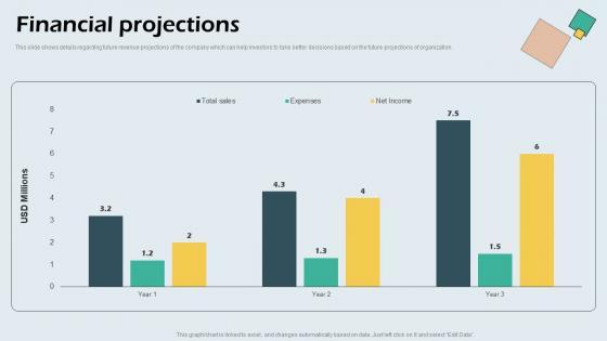 This slide shows details regarding future revenue projections of the company which can help investors to take better decisions based on the future projections of organization. Slidegeeks is here to make your presentations a breeze with Financial Projections Beauty Brand Capital Raising Pitch Deck Elements Pdf With our easy to use and customizable templates, you can focus on delivering your ideas rather than worrying about formatting. With a variety of designs to choose from, you are sure to find one that suits your needs. And with animations and unique photos, illustrations, and fonts, you can make your presentation pop. So whether you are giving a sales pitch or presenting to the board, make sure to check out Slidegeeks first. This slide shows details regarding future revenue projections of the company which can help investors to take better decisions based on the future projections of organization.