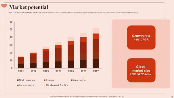 This slide represents esteemed market potential which assists investors to gain idea of growth opportunities of company in global market and make strategic investment decisions. Are you in need of a template that can accommodate all of your creative concepts This one is crafted professionally and can be altered to fit any style. Use it with Google Slides or PowerPoint. Include striking photographs, symbols, depictions, and other visuals. Fill, move around, or remove text boxes as desired. Test out color palettes and font mixtures. Edit and save your work, or work with colleagues. Download Market Potential Beauty Brands And Retailers Company Fund Raising Topics PDF and observe how to make your presentation outstanding. Give an impeccable presentation to your group and make your presentation unforgettable. This slide represents esteemed market potential which assists investors to gain idea of growth opportunities of company in global market and make strategic investment decisions.