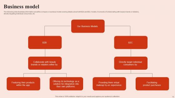 The following slide illustrates information about the companys business model covering details about both B2b and B2c models. It consists of collaborating with beauty brands or retailers, directly targeting individual consumers, etc. Boost your pitch with our creative Business Model Beauty Brands And Retailers Company Fund Raising Clipart PDF. Deliver an awe-inspiring pitch that will mesmerize everyone. Using these presentation templates you will surely catch everyones attention. You can browse the ppts collection on our website. We have researchers who are experts at creating the right content for the templates. So you do not have to invest time in any additional work. Just grab the template now and use them. The following slide illustrates information about the companys business model covering details about both B2b and B2c models. It consists of collaborating with beauty brands or retailers, directly targeting individual consumers, etc.