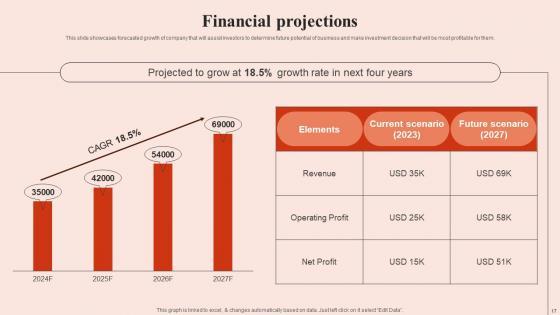 This slide showcases forecasted growth of company that will assist investors to determine future potential of business and make investment decision that will be most profitable for them. Slidegeeks is here to make your presentations a breeze with Financial Projections Beauty Brands And Retailers Company Fund Raising Portrait PDF With our easy-to-use and customizable templates, you can focus on delivering your ideas rather than worrying about formatting. With a variety of designs to choose from, you are sure to find one that suits your needs. And with animations and unique photos, illustrations, and fonts, you can make your presentation pop. So whether you are giving a sales pitch or presenting to the board, make sure to check out Slidegeeks first This slide showcases forecasted growth of company that will assist investors to determine future potential of business and make investment decision that will be most profitable for them.
