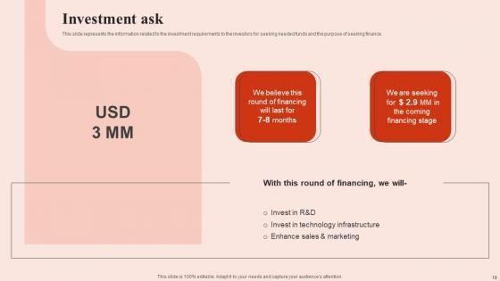 This slide represents the information related to the investment requirements to the investors for seeking needed funds and the purpose of seeking finance. Find highly impressive Investment Ask Beauty Brands And Retailers Company Fund Raising Brochure PDF on Slidegeeks to deliver a meaningful presentation. You can save an ample amount of time using these presentation templates. No need to worry to prepare everything from scratch because Slidegeeks experts have already done a huge research and work for you. You need to download Investment Ask Beauty Brands And Retailers Company Fund Raising Brochure PDF for your upcoming presentation. All the presentation templates are 100 percent editable and you can change the color and personalize the content accordingly. Download now This slide represents the information related to the investment requirements to the investors for seeking needed funds and the purpose of seeking finance.